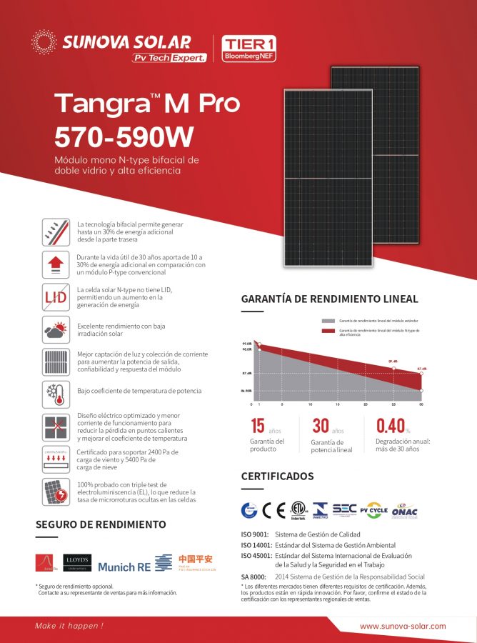 Sé el primero en valorar “Panel fotovoltaico de 570 Wp dimensiones 1,1 x 2,3 m SUNOVA 570wc Tangra M Pro Bifacial N-Type 72MDH(T)”
